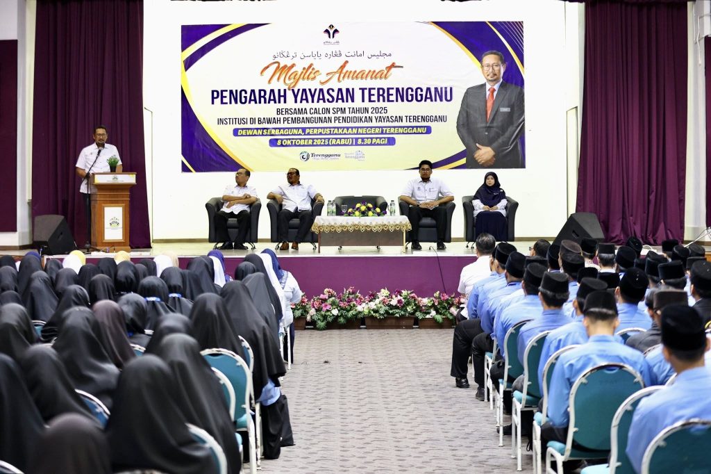 Pengarah Yayasan Terengganu (YT), YBrs. Encik Ahmad Farhan bin Abdul Wahab hari ini telah meluangkan masa untuk menyampaikan amanat khas kepada calon-calon Sijil Pelajaran Malaysia (SPM) 2025 dari institusi pendidikan di bawah kelolaan YT dalam satu majlis yang diadakan di Dewan Serbaguna, Perbadanan Perpustakaan Awam Terengganu.